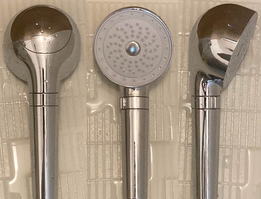 このシャワーヘッドは手に持つとズシリと重量感があり、シャワーヘッドにいろいろ作りこまれた部品が入っているのだろうなと想像させるます。